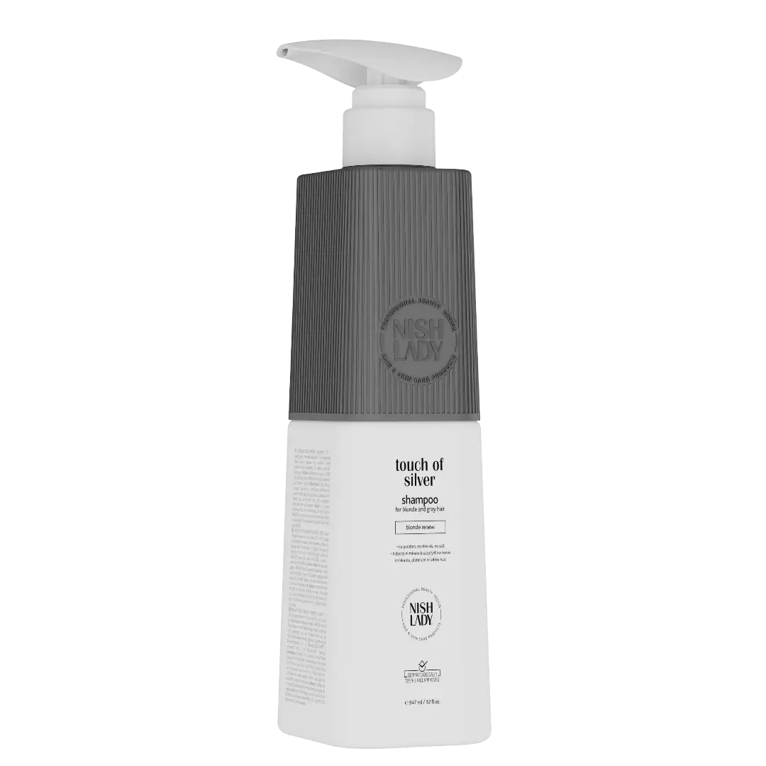El champú Nishlady Silver 947ml neutraliza reflejos anaranjados en cabellos rubios, grises o blancos. Aporta brillo, fuerza y un tono más natural y frío.